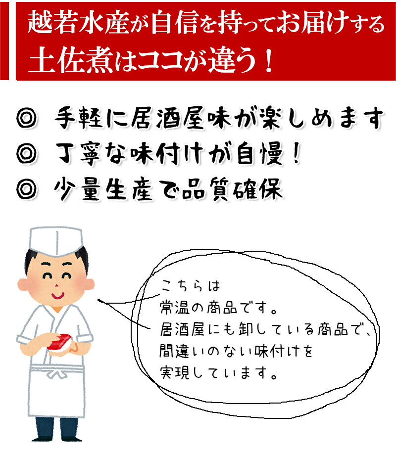 名称(内容量) 筍の土佐煮 1kg(固形量800g) 賞味期限 商品に記載 製造日より6カ月 保存方法 常温保存/td> 原材料 たけのこ、砂糖、しょうゆ、食塩、かつお節、調味料(アミノ酸等)、pH調整剤、他 最終加工地 中国 販売者 株式会社えつすい 福井県敦賀市砂流43-6-3(配送センター) 株式会社えつすいです。