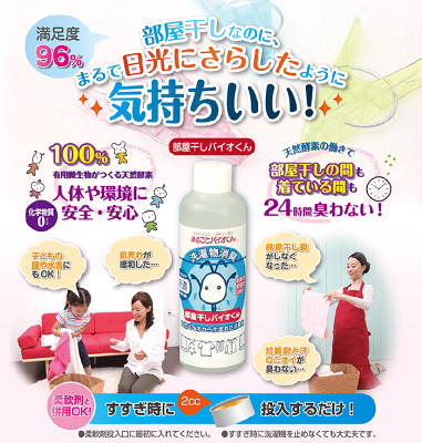 部屋干しバイオくん 200ml■商品詳細全国67のクリーニング事業所で使用されている、プロがみとめる消臭剤!天然バイオから生まれた消臭剤です。